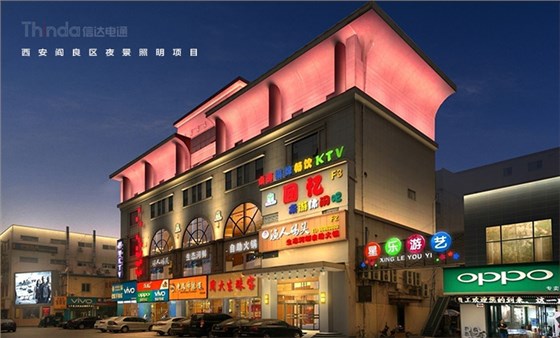 閻良區(qū)亮化示范街部分樓宇、景觀亮化設(shè)計效果圖與亮化實施后的實景賞析: