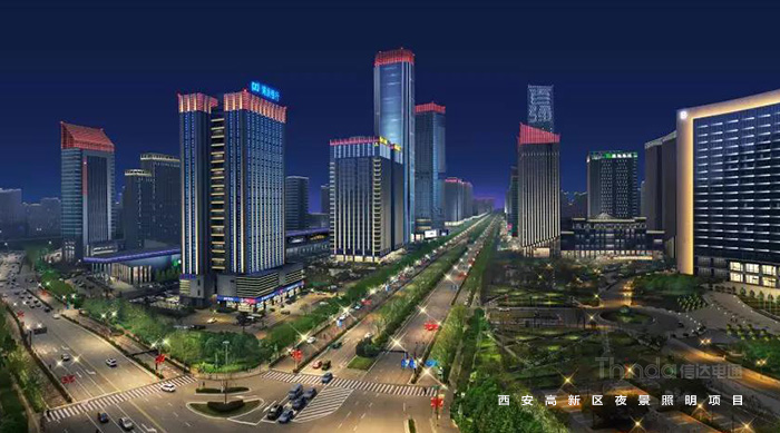 1991年3月西安高新區被國務院首批批準為國家級高新區,如今,西安高新區已成為一個代表西安與西部高新科技產業前沿的領地。2016年,西安高新區整體提升夜景照明,信達電通對高新區灃惠南路、唐延路和錦業路三條主干道及輻射的周邊建筑進行亮化升級改造,區域全長6.4KM。